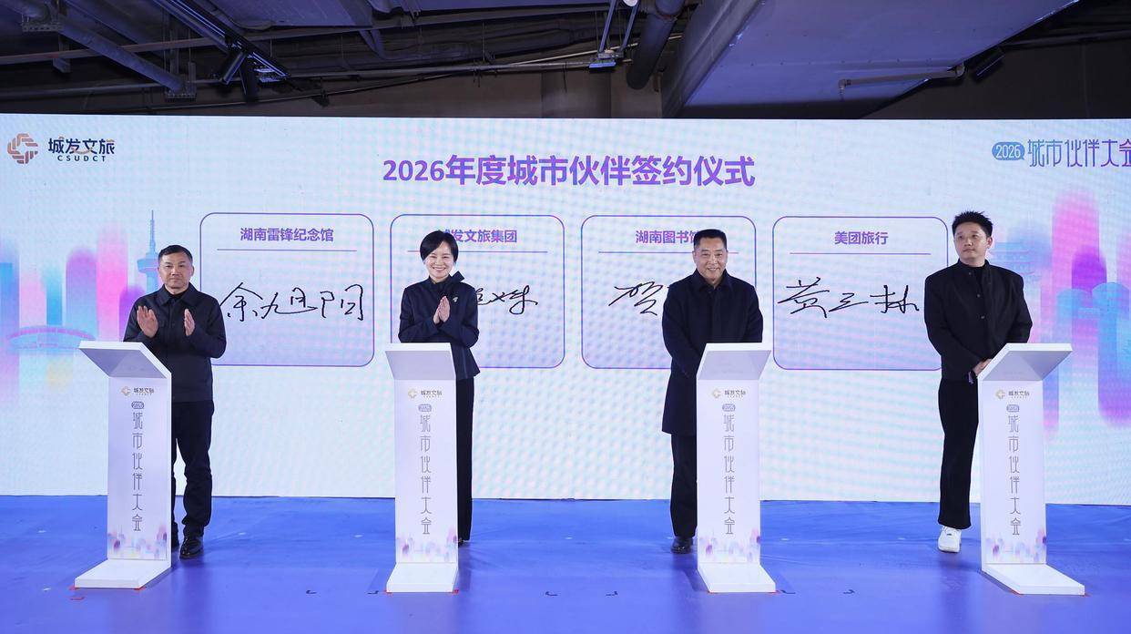 活动现场,城发文旅还与湖南图书馆、湖南雷锋纪念馆、美团旅行签订战略合作协议。大会还特别设置颁奖环节,颁发“趣游合伙人”“宝藏神队友”“灵感新搭子”三大趣味奖项。